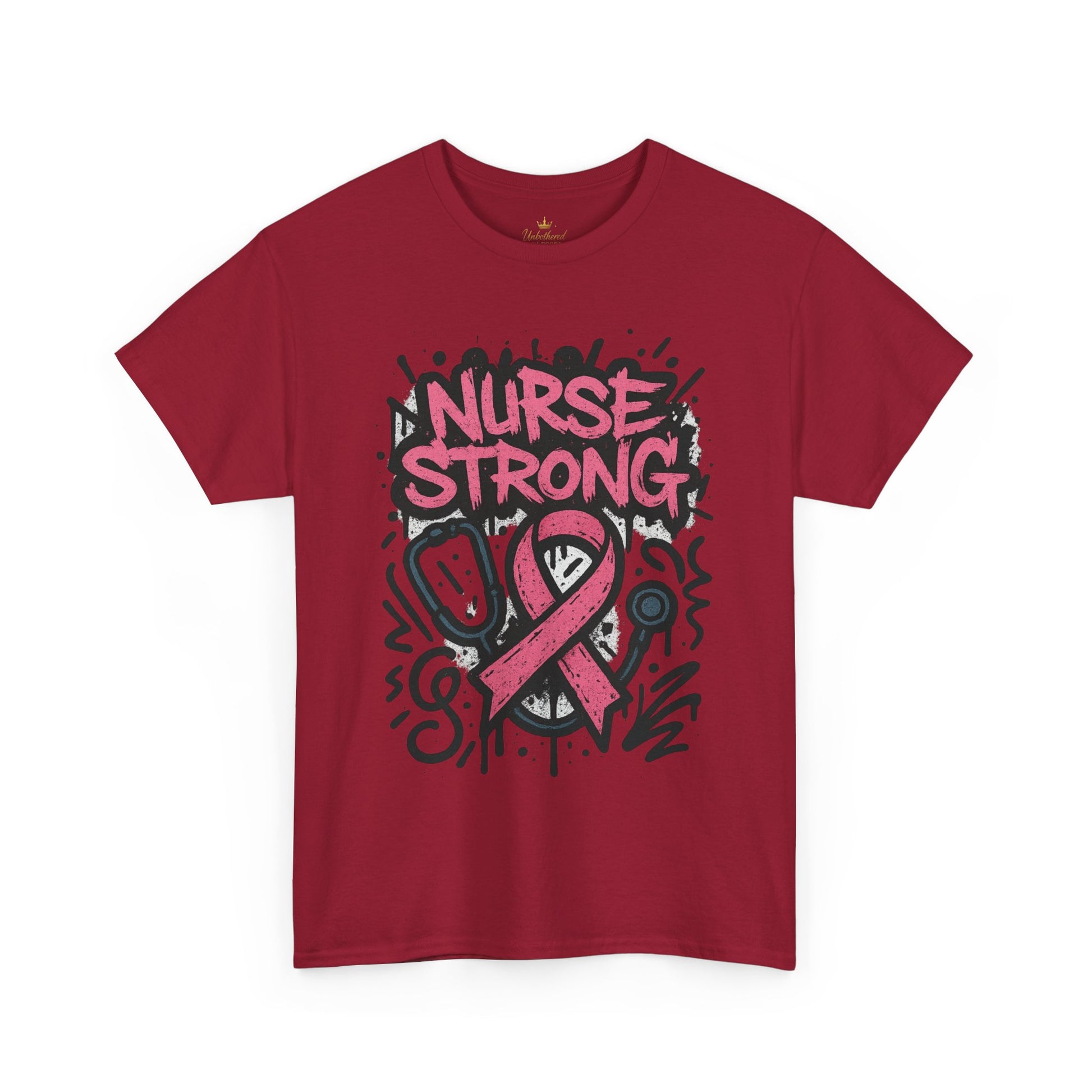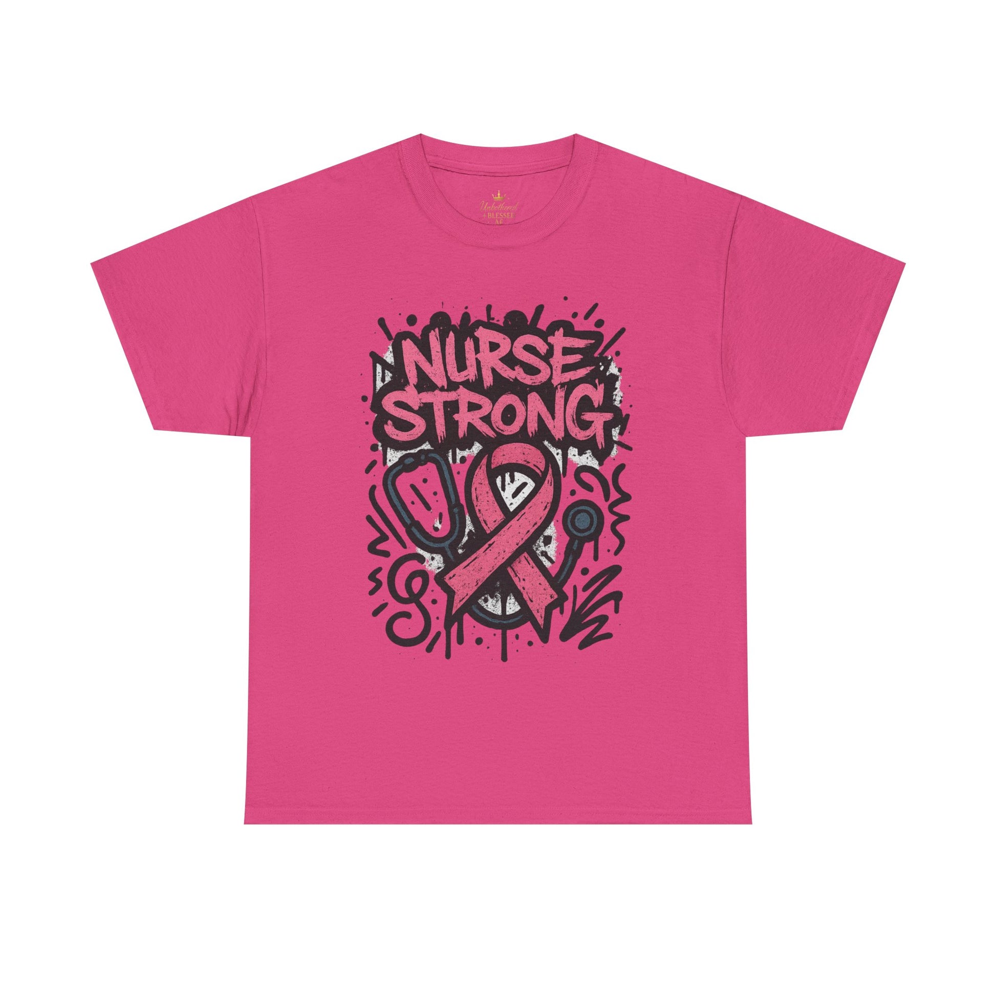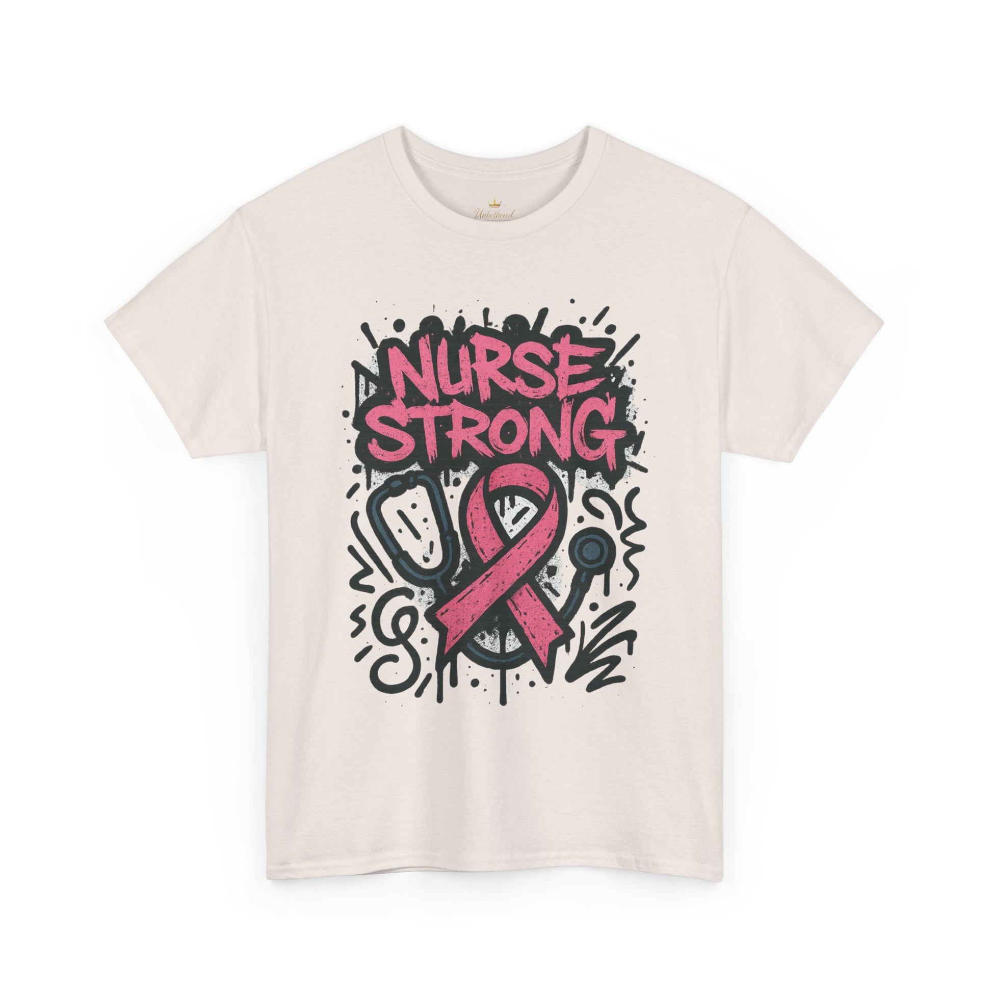 Show your strength, support, and style with this bold Nurse Strong graphic tee. Designed with a powerful graffiti-style print and the iconic pink ribbon, this shirt is more than just apparel — it’s a statement of courage, compassion, and the fight against breast cancer. Perfect for those looking to make a bold statement of support and empowerment during Breast Cancer Awareness Month.